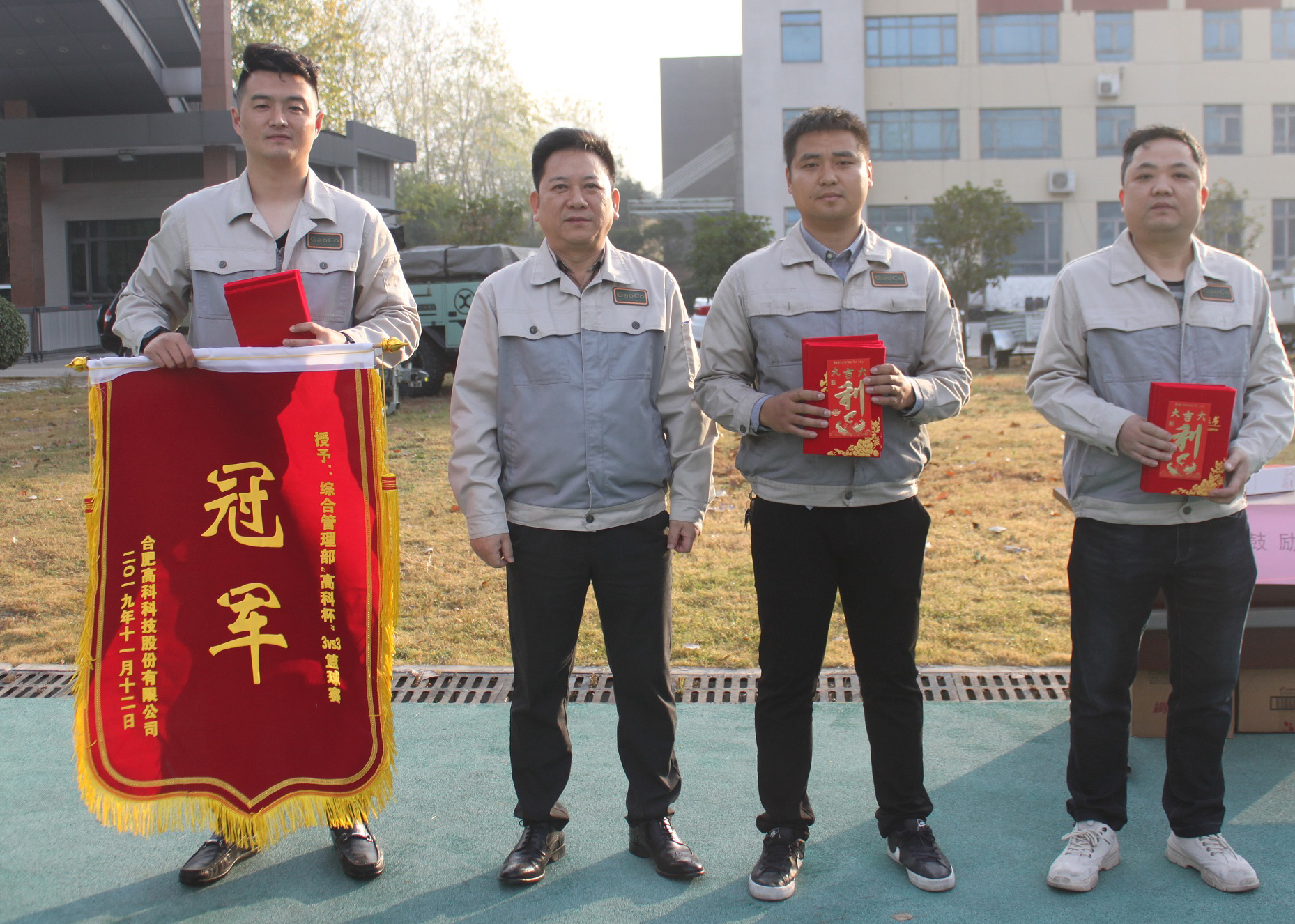 籃球比賽是最能體現(xiàn)機(jī)智與勇敢、團(tuán)結(jié)與協(xié)作的一項(xiàng)運(yùn)動(dòng),所以合肥高科已經(jīng)連續(xù)舉辦了四屆籃球賽事,接下來(lái)是頒發(fā)籃球比賽的獎(jiǎng)項(xiàng),獲得冠軍的是綜合隊(duì),亞軍是彩晶隊(duì),季軍是模具隊(duì),由公司的胡董頒獎(jiǎng)并授書。