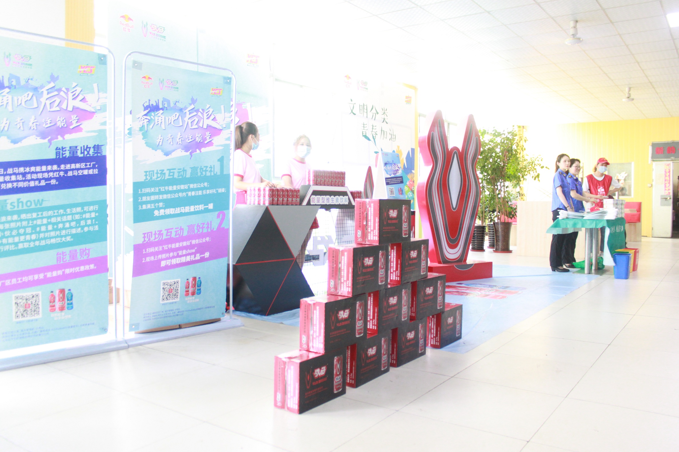 6月17日首場活動,走進合肥高科,不僅帶來垃圾分類新時尚小課堂,現場學習分類知識,領取清涼宣傳扇,還給復產復工的一線企業職工送去紅牛維生素飲料,為企業復工充能,為青春加油!