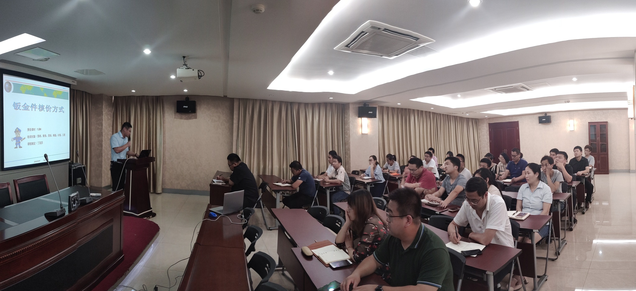 7月20日,烈日炎炎,地面滾燙焦灼,在公司的三樓大會議室里,卻是涼意舒適,在這里,合肥高科進行了第八次業務知識培訓——鈑金件核價方式,由鈑金事業部丁部長主講。